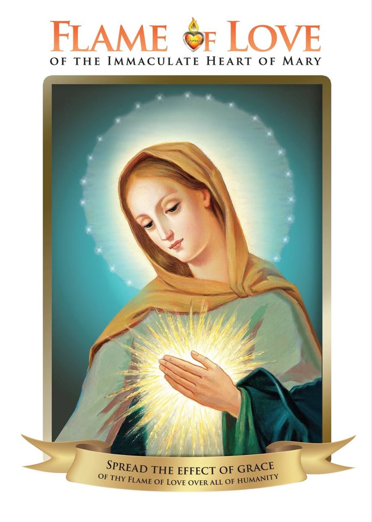 It is with filial trust that we beseech you, Blessed Mother, with the Flame of Love of your Immaculate Heart and through the Holy Spirit, to inflame in our hearts the fire of a perfect love for God and all men.